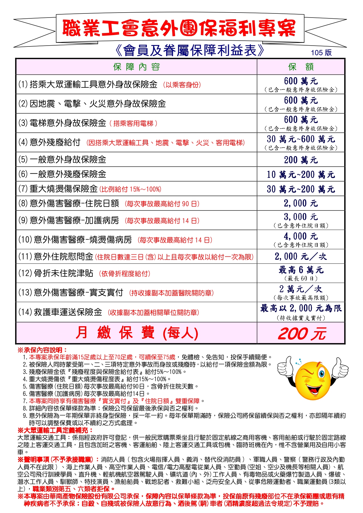 105年會員及眷屬團保福利專案 - 華南產物保險公司承保